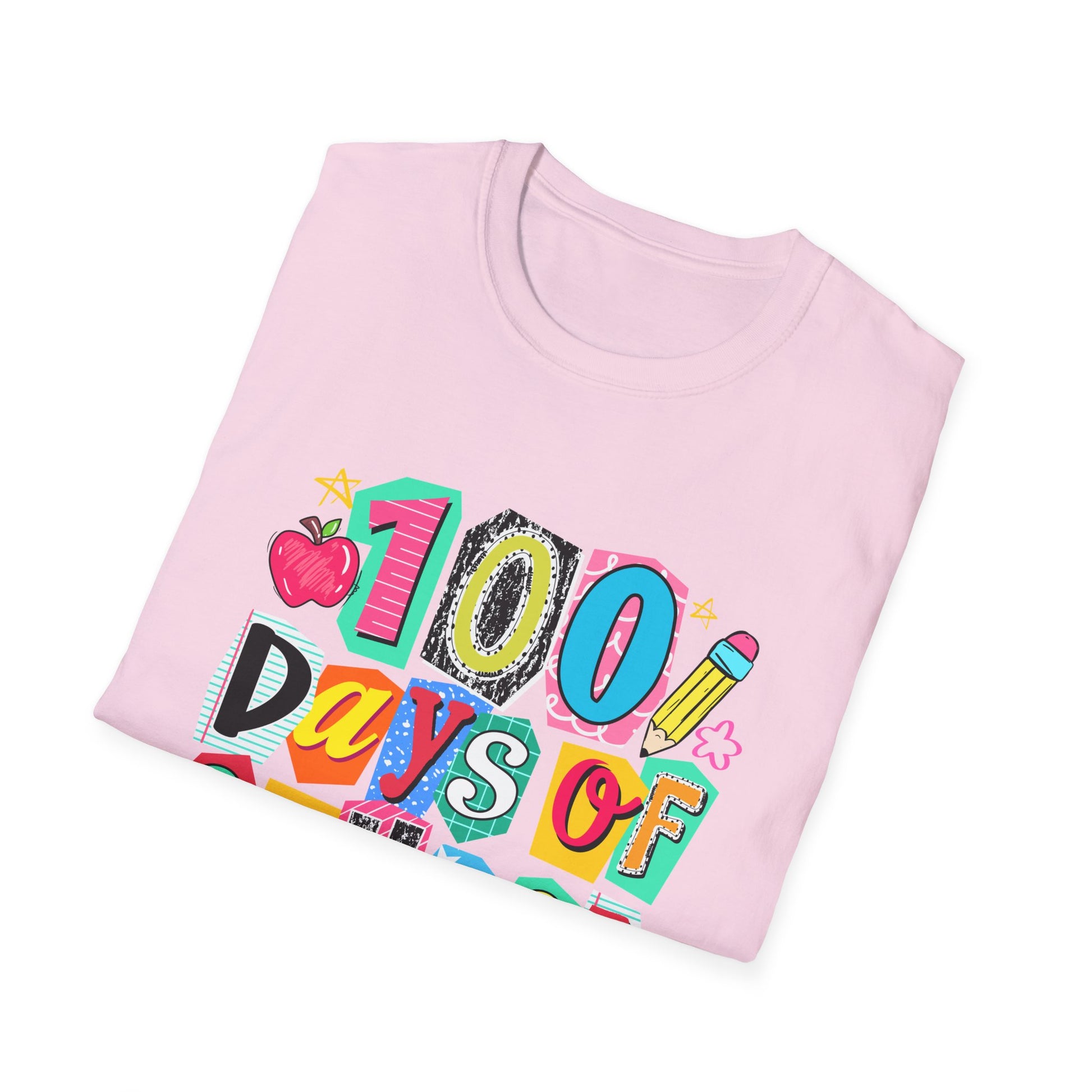 Celebrate a milestone with bright, playful energy. This lightweight cotton tee carries a colorful “100 Days of School” design that reads like a classroom craft come to life — chunky letters, doodled hearts and pencils, and cheerful pops of color. It sits comfortably on the shoulders and wears like a soft favorite: breathable, smooth, and uncomplicated. Wear it to assemblies, classroom photos, or casual school events to mark the day with warmth and a little nostalgia. The simple crew neck and classic fit let kids move freely while the tear-away label keeps the back of the neck itch-free. Durable printing methods ensure the design stays lively through washes, so the memory lasts beyond the celebration.
