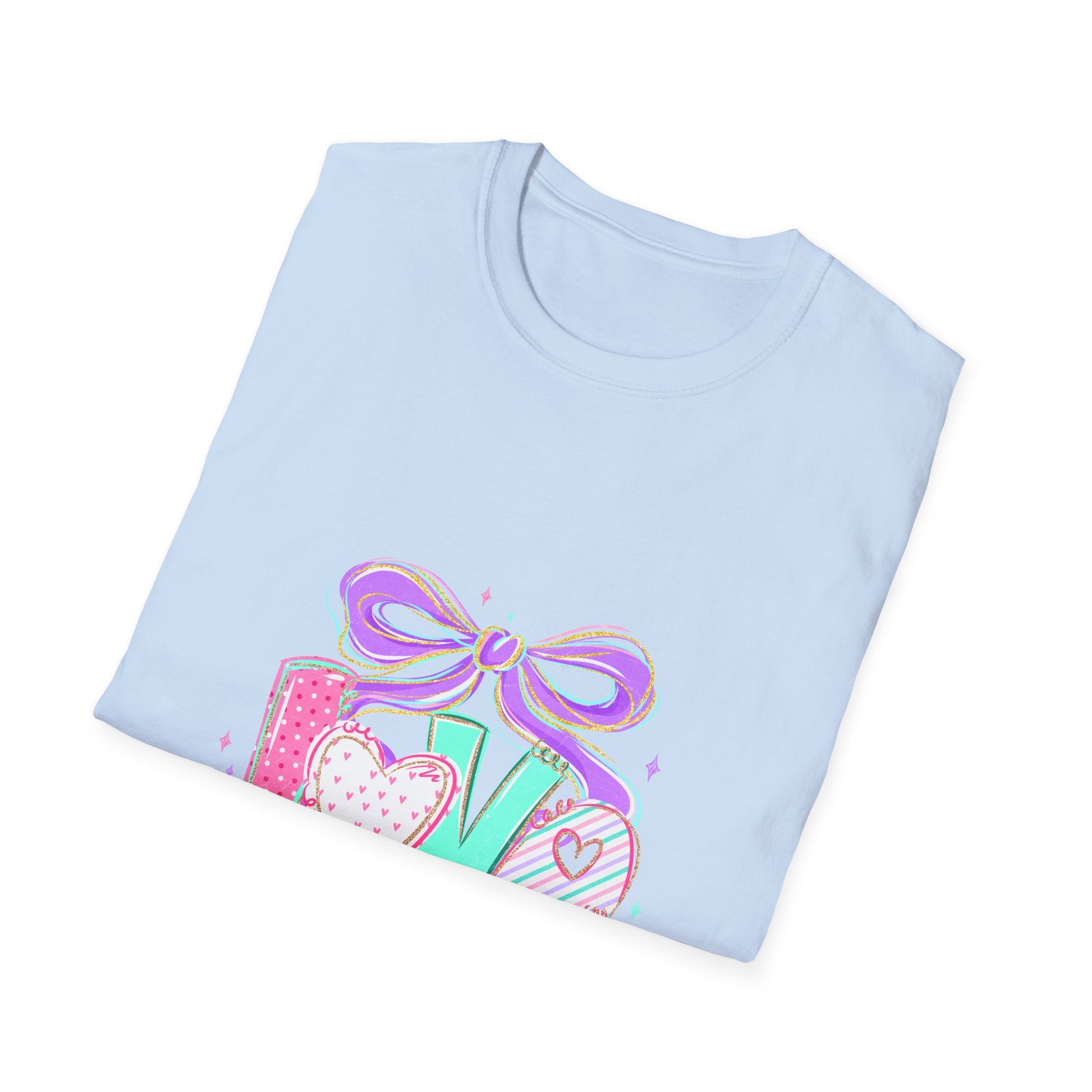 Love Bow Graphic T-Shirt — Pastel Heart & Ribbon Valentine Tee